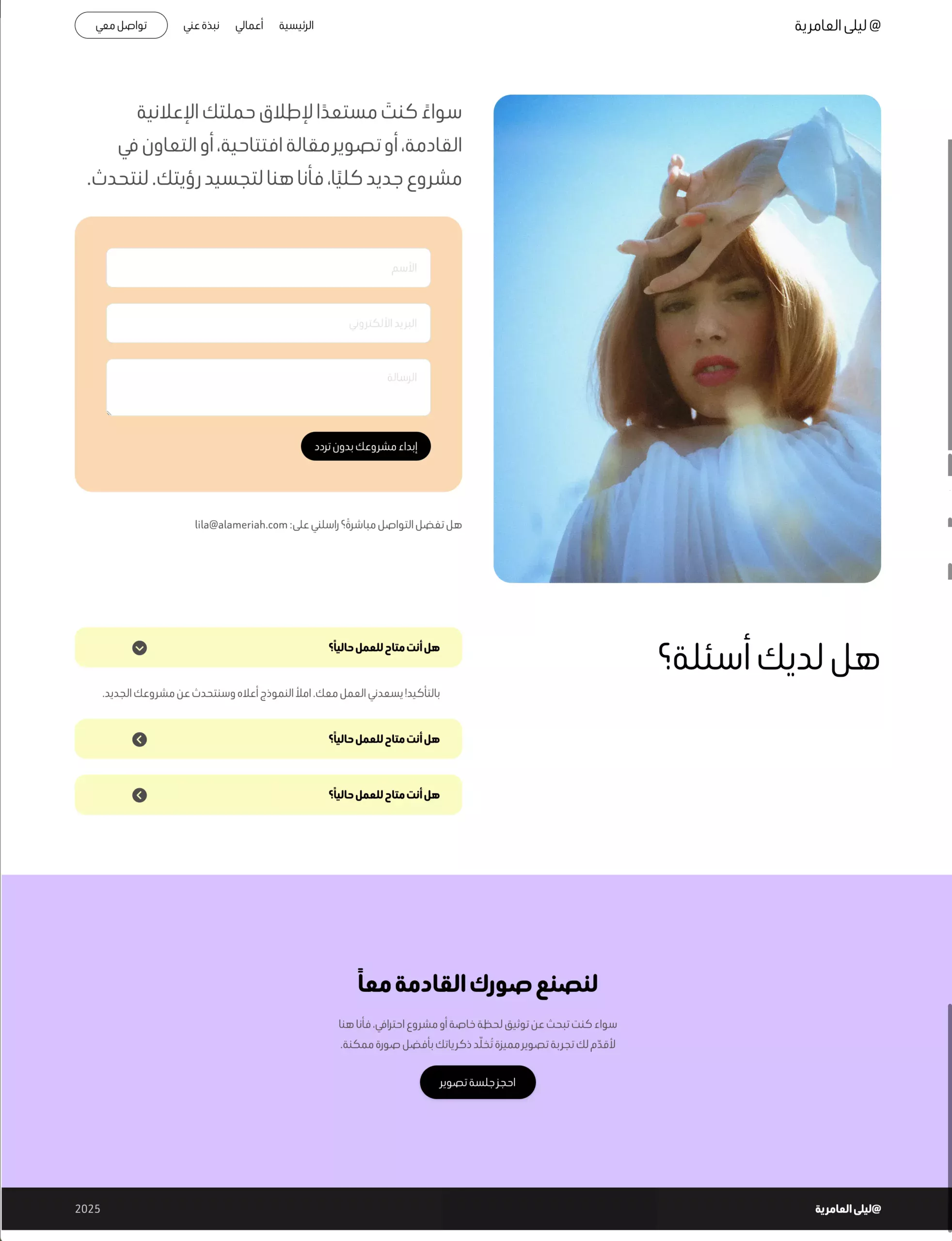 إذا كنت تبحث عن موقع يعكس حسّك البصري ويمنح أعمالك التصويرية المكان الذي تستحقه، فإن قالب «Photographer1» هو الخيار المثالي. يتميز بتصميم نظيف ومتجاوب مع جميع الأجهزة، ويُتيح لك عرض جلسات التصوير، المشاريع، معرض الصور، والعروض الخاصة بطريقة جذابة.